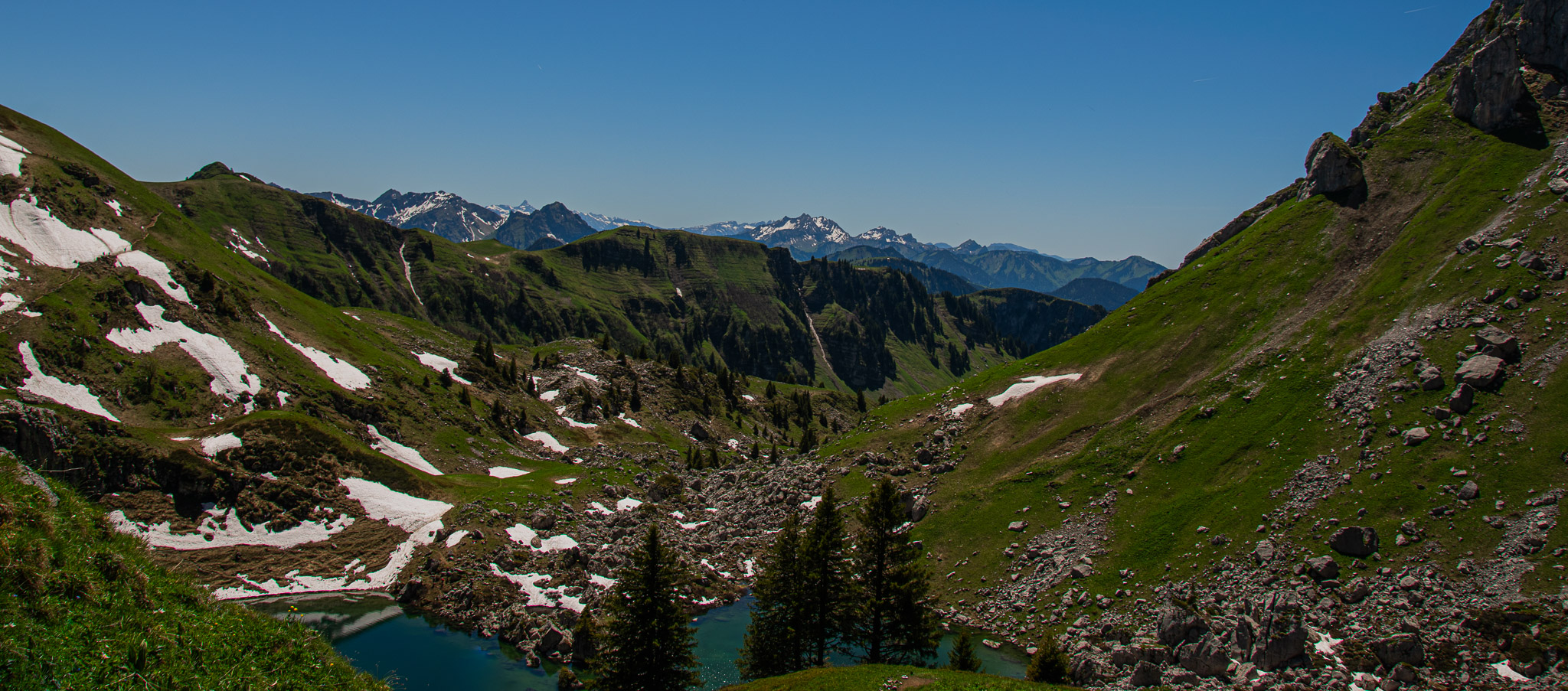 J'ai réalisé ces clichés au lac du Darbon, situé en Haute-Savoie. Ils présentent l'environnement dans lequel ce lac se trouve, en mettant en valeur l'étendue des montagnes autour de lui. Ces photos soulignent également le contraste entre le bleu du lac et du ciel, et le vert des montagnes environnantes.