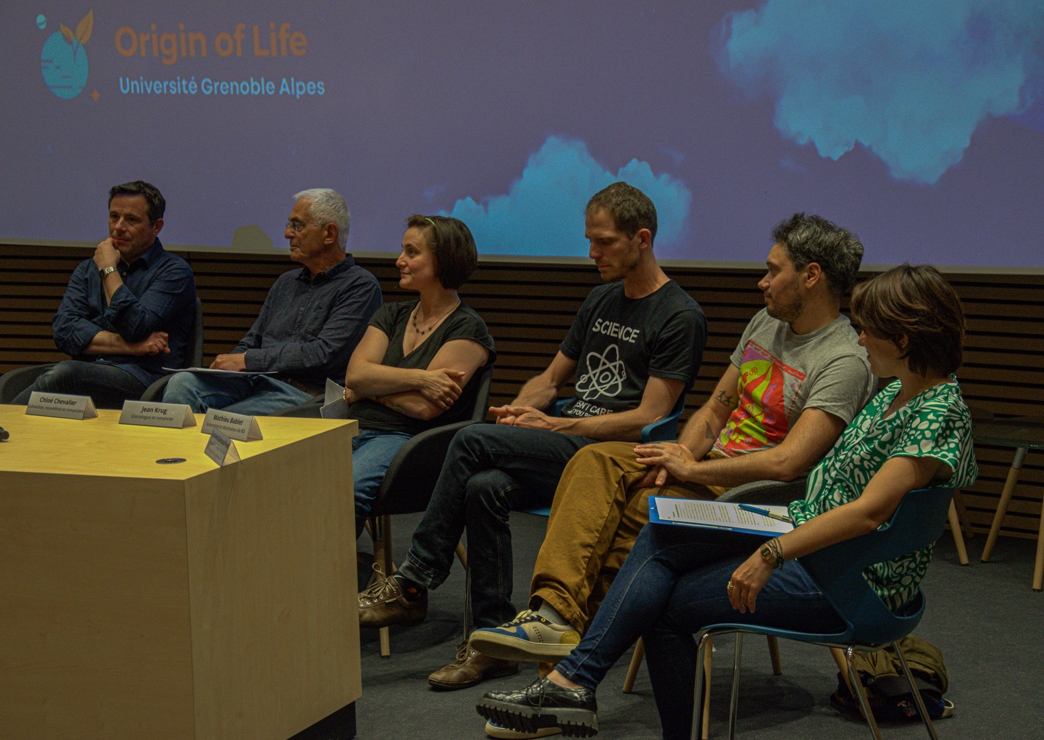 J'ai réalisé cette série de photos lors d'une soirée table ronde intitulée "Kumulipo". Mon approche photographique a consisté à capturer la dynamique des échanges entre les différents participants, en photographiant à la fois les moments où ils s'exprimaient et ceux où ils écoutaient les interventions de leurs collègues.