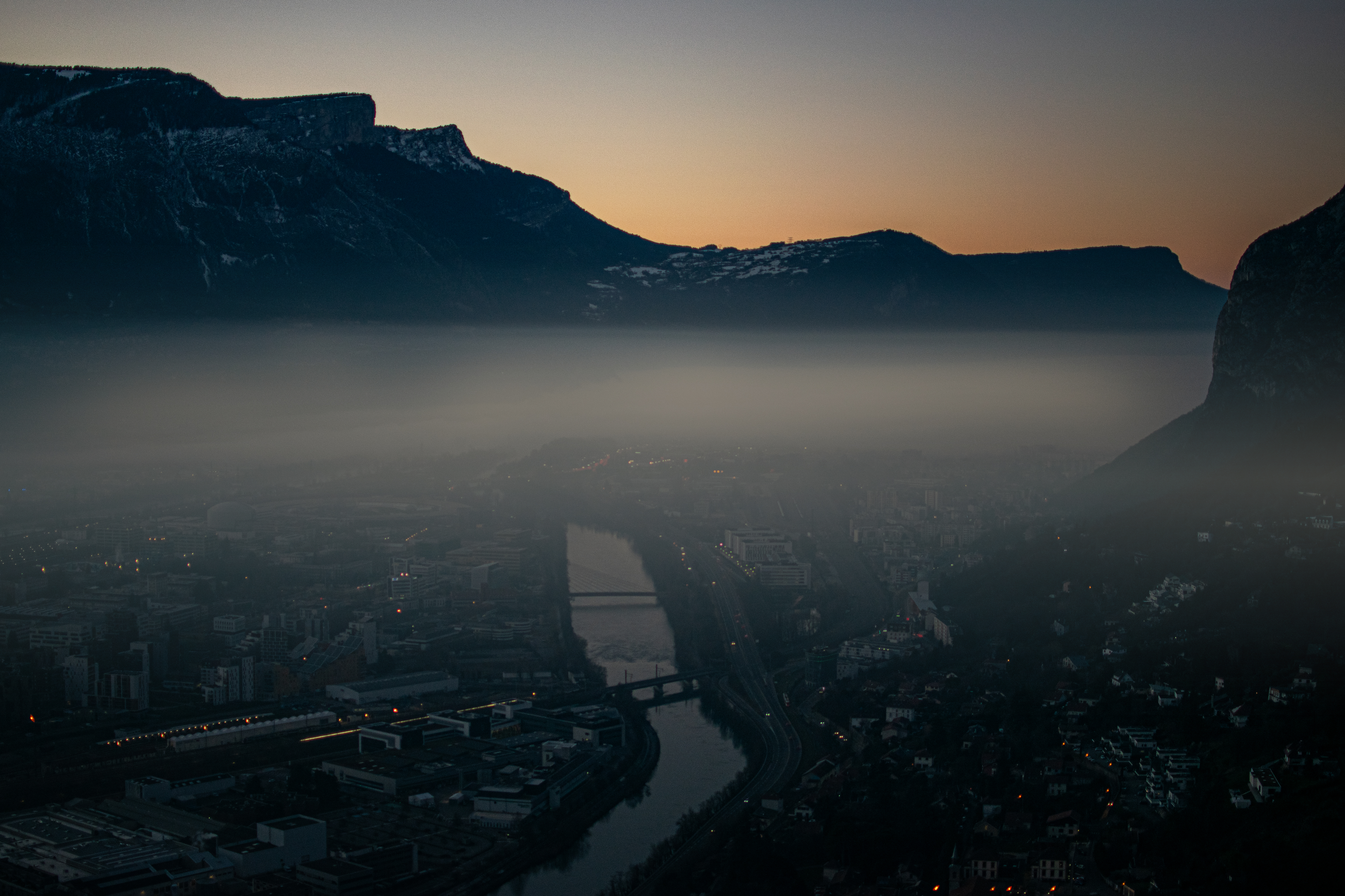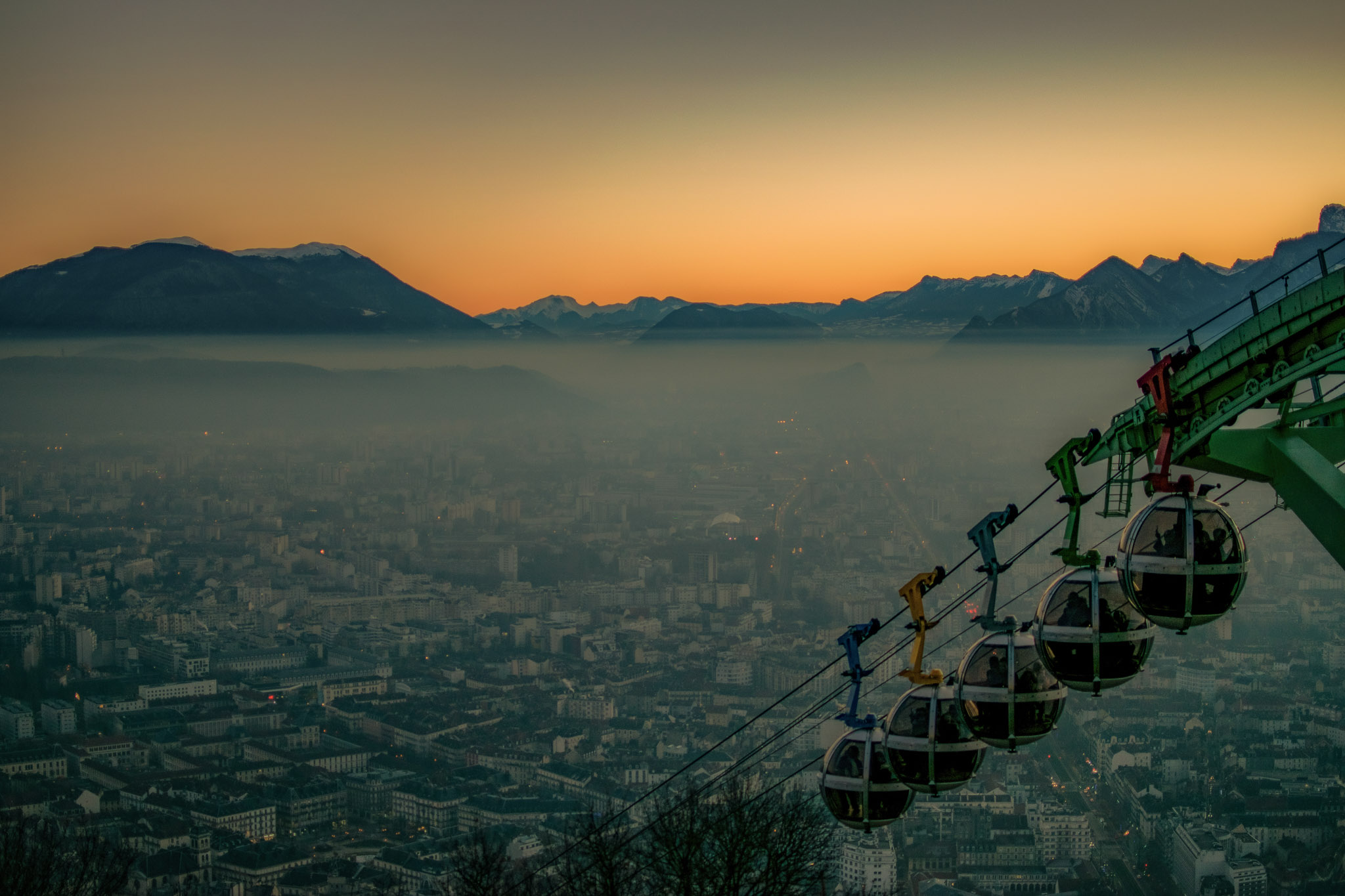 Ces clichés ont été réalisés en début de soirée sur les hauteurs de Grenoble, à la Bastille. Mon but était de capturer le coucher de soleil, en le mettant en valeur à travers différentes formes de composition, afin de créer divers types d'ambiances.